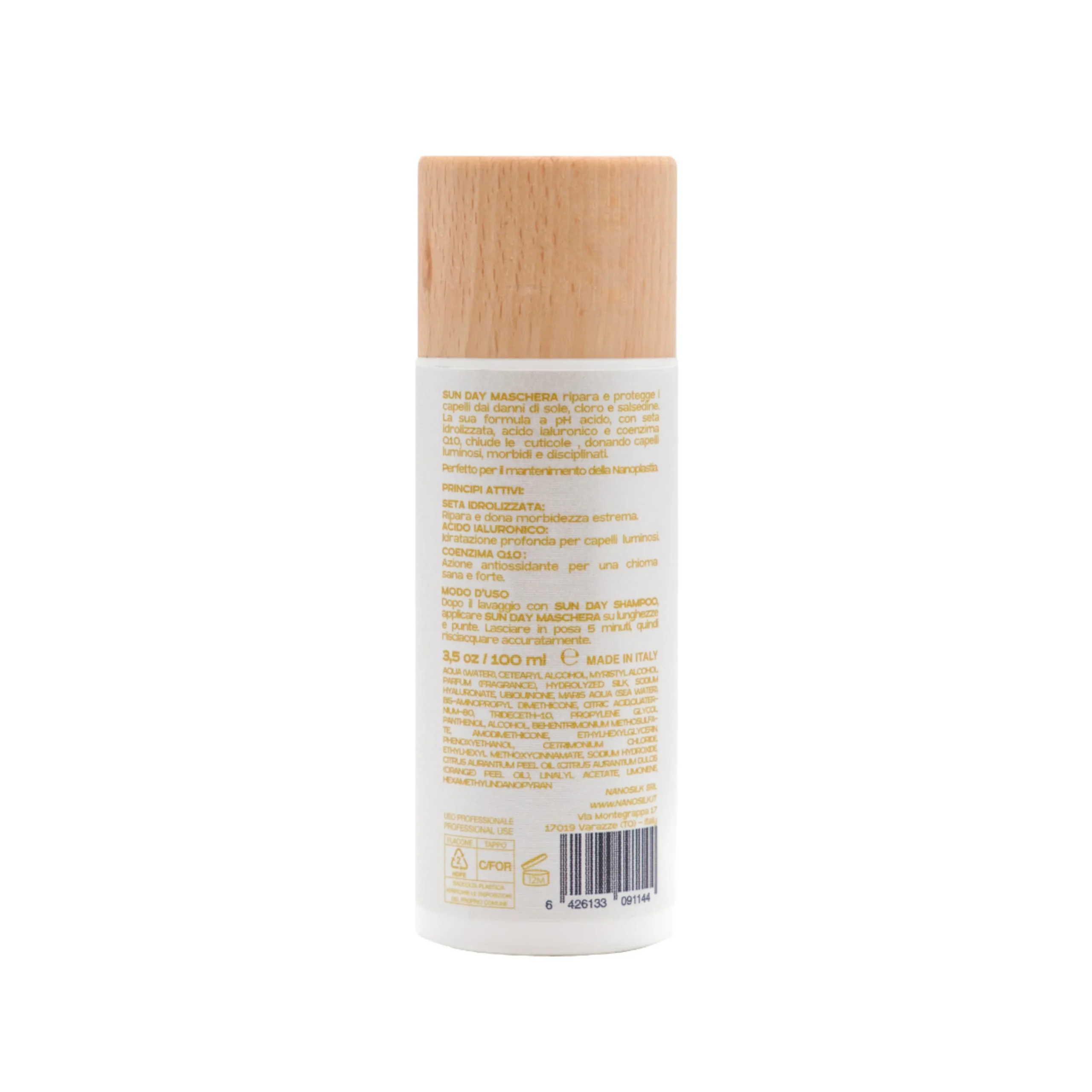 Sun Day Maschera Travel è il tuo alleato compatto per riparare, idratare e rinforzare i capelli stressati dal sole anche fuori casa. La stessa formula a pH acido arricchita con seta idrolizzata, acido ialuronico e coenzima Q10, in un formato pratico e leggero, perfetto per aereo, spiaggia o piscina.